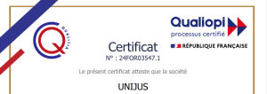 Unijus est certifiée Qualiopi au titre des actions de formation. Les formations sont éligibles à la prise en charge par votre OPCO.